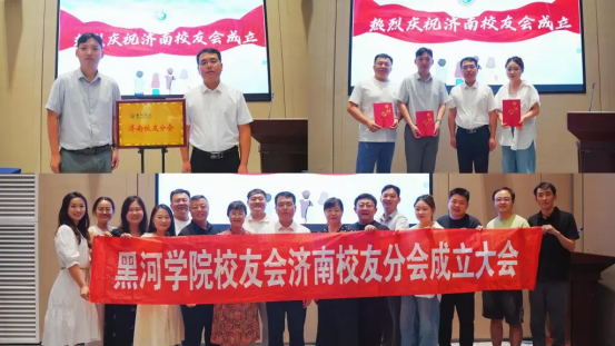 8月3日,姜国玉参加学校第一家校友会——西安校友会成立仪式;8月9日,安全义参加济南校友会成立仪式。两位领导与西安、济南校友分会首任会长芦康、孙博涵共同为分会揭牌,并为首届理事会成员颁发聘书。校领导回顾了学校67年发展历程,并指出校友是母校最珍贵的财富、最靓丽的名片,期待校友会秉持“以情聚友、以友促业、以业兴校”宗旨和“心系母校发展、推动资源共享、助力校友事业、合力报效祖国”的办会理念,推动母校与校友共赴新程。校友代表向母校敬赠“四载黑河求学路 一生母校培育恩”书法作品,表达感恩之情,并表示将珍惜母校情谊,积极组织交流活动,整合行业资源,宣传推介学校,共同推动母校与校友共同发展。